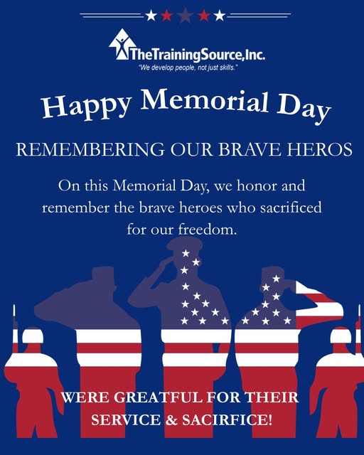 This Memorial Day, The Training Source honors the memory of many, in honor of all. We remember those who gave everything for our country. They may be gone, but they are never forgotten. #MemorialDay #HonorTheFallen #NeverForgotten #InTheirMemory #TheTrainingSourceRemembers (fb)