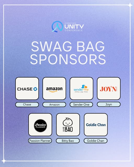 UNITY 2025 kicks off today! 🎉 Special thanks to our gift bag sponsors for their generous support and partnership: @Chase @Amazon @Senderone @joyn.the.fun @passionplanner @bitty.bao @goldiecylon (fb)