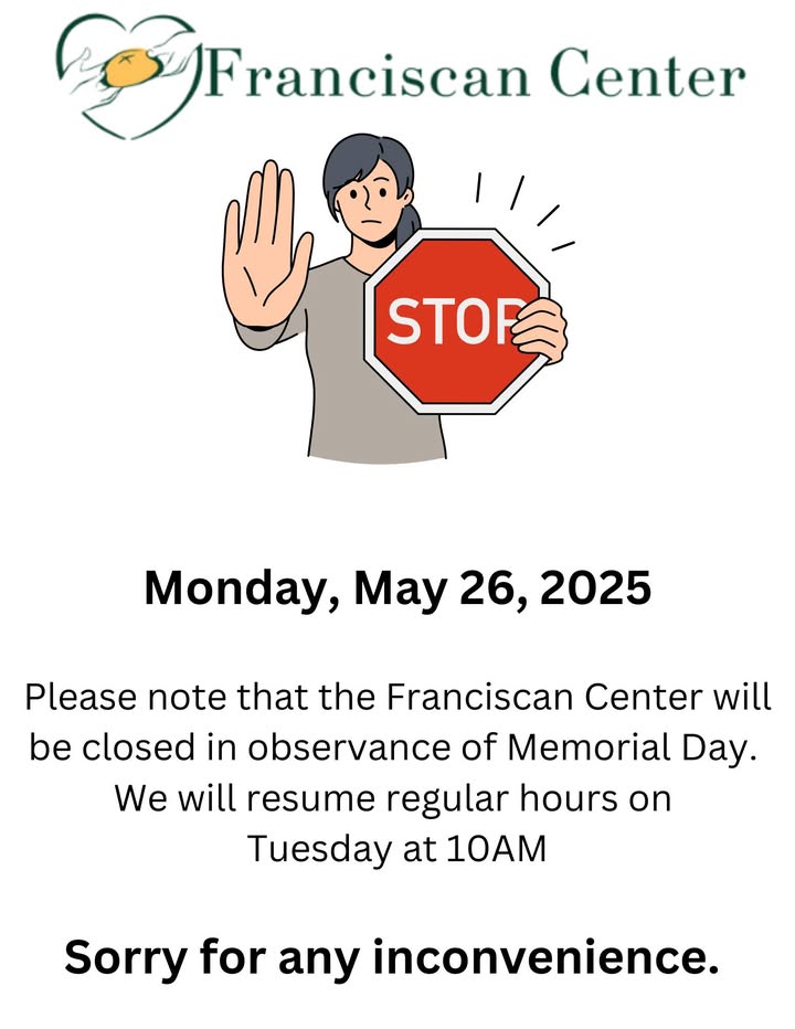📅 Mark Your Calendars! There’s a lot happening at the Franciscan Center — here’s what’s coming up: 🇺🇸 Monday, May 26 – Closed for Memorial Day We honor and remember those who served. Our doors will be closed for the holiday. We will reopen on Tuesday May 27 at 10am. 🍎 Saturday, May 31 – Food Distribution Day Join us for a community food distribution! All are welcome. Stop by between 10 AM and 12 PM. Maryland DHS will also be with us providing services as well. Wednesday, June 11 – No Identity Access Services this day There will be no Identity Access Services this day as the MVA ID Day is the next day. If you need an ID please show up on Thursday, June 12th. 🪪 Thursday, June 12 – MVA ID Day Need help getting a Maryland State ID? Our team is here to guide you through the process. Services begin at 9AM. 👔 Friday, June 13 – Father’s Day Friday We’re celebrating the dads in our community with a warm meal, small gifts, and lots of love. 💛 Stay tuned for more details and share this post to spread the word. We can’t wait to see you! (fb)
