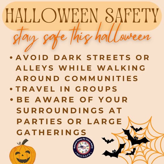 With Halloween this week, NCCSAFE wraps up our fall safety tips! Whether you’re trick-or-treating or heading to a Halloween party, stay alert, travel in groups, and have a safe Halloween! #halloween #NCCSAFE #safetytips (fb)