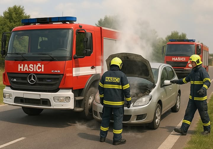 VÝJEZD č. 43/2025 📅 Dne 19. 9. 2025 v 16:54 vyjela jednotka s 🚒 CAS MB Atego k události typu 🔥 POŽÁR – DOPRAVNÍ PROSTŘEDKY 🚗 do obce Všechromy.👨🚒 Na místě dále zasahovala jednotka HZS HS Říčany. Foto: ilustrační, vygenerované AI (fb)