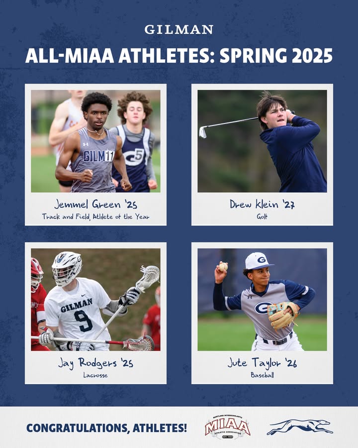 Congratulations to the below four athletes — Jemmel Green '25 (track and field), Drew Klein '27 (golf), Jay Rodgers '25 (lacrosse), and Jute Taylor '26 (baseball) — who were named to the All-MIAA Conference for exceptional performance during the spring 2025 season! In addition to taking the spring 2025 All-MIAA titles for the 800m, 1600m, and 3200m, Green was also named the "A" Conference's Athlete of the Year for track and field! (fb)