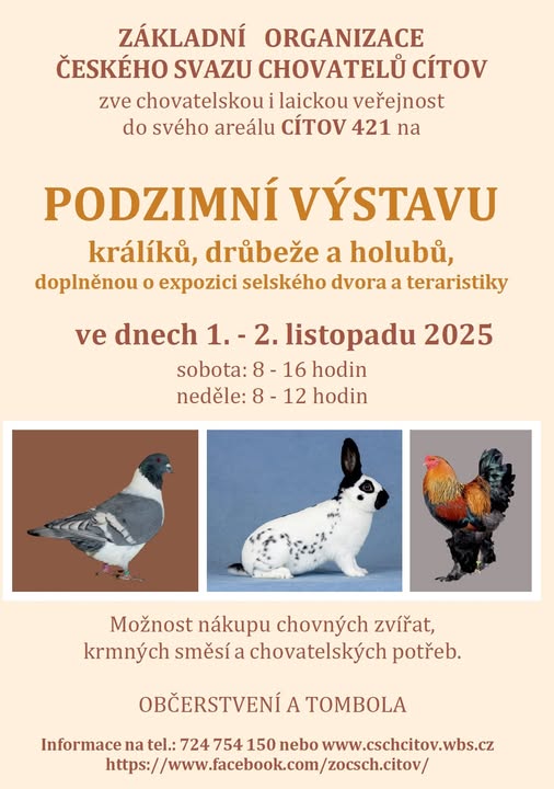 Všimli jste si, jak je venku škaredě? To je jasná známka toho, že se blíží podzim. A s ním i naše tradiční podzimní výstava. Uvidíme se v našem areálu v Cítově č.p. 421 už 1. a 2. listopadu. (fb)