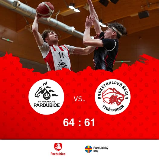 TŘI VYROVNANÉ BITVY, JEDEN POSTUPUJÍCÍ Naši junioři zvládli náročnou sérii předkola play-off proti Tygrům Praha a v rozhodujícím zápase si tým BK VIVIDBOOKS Pardubice vybojoval postup do čtvrtfinále! 🔥🏀 Celá série byla skvělou ukázkou rychlého a bojovného basketbalu s výbornými individuálními výkony na obou stranách. Děkujeme Tygrům za férovou sérii a přejeme hodně štěstí do další sezóny. Nás čeká další výzva – boj o postup do semifinále. Soupeřem nám bude GBA Jindřichův Hradec. #beksa #pardubice #basketball #žijsbeksou #jdemedál (fb)