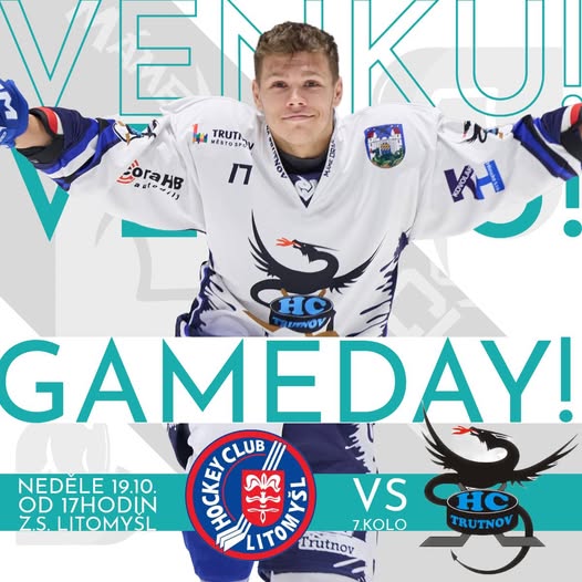HRAJEME VENKU! Dnes od 17:00 v Litomyšli 👊🏼 Jedeme bojovat o další body! 🐉🩵🤍 #mámedračísrdce (fb)