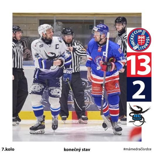 ❌PROHRA❌ Těžký zápas v Litomyšli končí vysokou porážkou 13:2 (3:0, 2:2, 8:0). Po bojovné druhé třetině nám absolutně nevyšla ta třetí, ve které jsme inkasovali osm gólů.🫥 Do utkání jsme nastoupili v oslabené sestavě kvůli zraněním a nemocem několika hráčů naší sestavy.🤕 Naše trefy: Luštinec a Vondráček.🏒 Dnes to nevyšlo, ale nevzdáváme se, poučíme se a do dalšího zápasu zamakáme. Ve středu máme volno a v neděli nastoupíme na domácím ledě proti Novému Městu od 17 hodin.👊🏼 (fb)