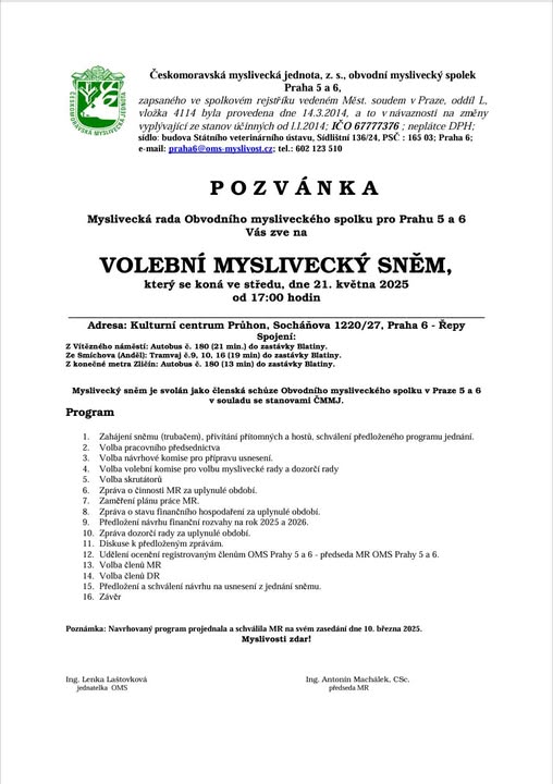 OMS Praha 5 a 6 | Obvodní myslivecký spolek Praha 5 a 6