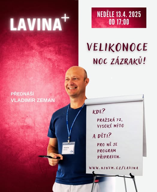Čeká nás veliká noc – VELIKONOCE, a tak jsme se rozhodly dát tento nejen křesťnanský svátek jako téma pro další Lavinu+.🤩 Řečníkem bude Vlaďa Zeman a věřím, že si z toho každý z nás odnese něco nového. Stejně jako vždy se můžete těšit i na křesťanskou hudbu a kavárnu po programu. ☕🫖 Těšíme se na Vás. #lavina+ #lavinavm #VELIKONOCE (fb)