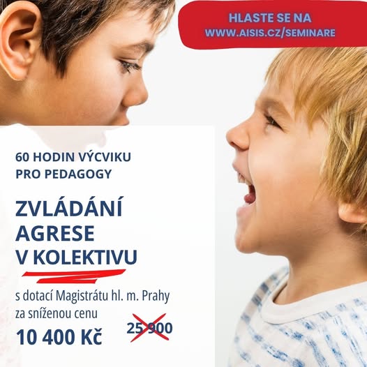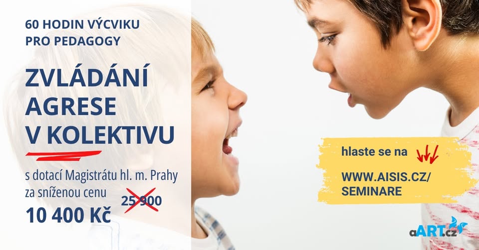 Naučte ve škole děti zvládat vztek a agresi! Otevíráme výcvik s mimořádnou dotací pro pražské školy. 🙋♂️🙋♀️ 👉pochopíte faktory, které mohou způsobovat vztek a agresi u dětí 👉poznáte způsoby regulace vzteku a jak mu předcházet 👉pochopíte, jak lze nacvičovat rozvoj sociálních dovedností 👉nabyté poznatky a dovednosti si vyzkoušíte a budete je moct prakticky využívat ve škole Začínáme už 6. října 2025 v YMCA Praha! Hlaste se zde 👉 https://www.aisis.cz/seminare/aart-trenink-zvladani-agrese-a-nacvik-socialnich-dovednosti-2025a/ Děkujeme za podporu Magistrátu hl. m. Prahy. 🙏 #aart #zvladanivztekuveskole #dotovanyprogram #vzdelavaniucitelu (fb)