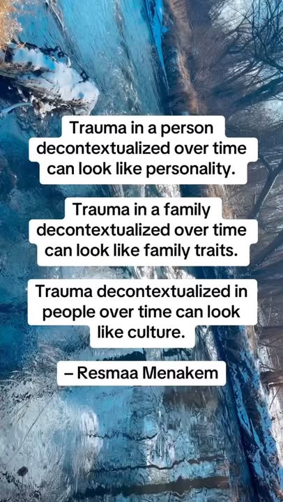 “Trauma in a person decontextualized over time can look like personality. Trauma in a family decontextualized over time can look like family traits. Trauma decontextualized in people over time can look like culture.” @resmaamenakem #repost #traumahealing #breakingcycles (fb)