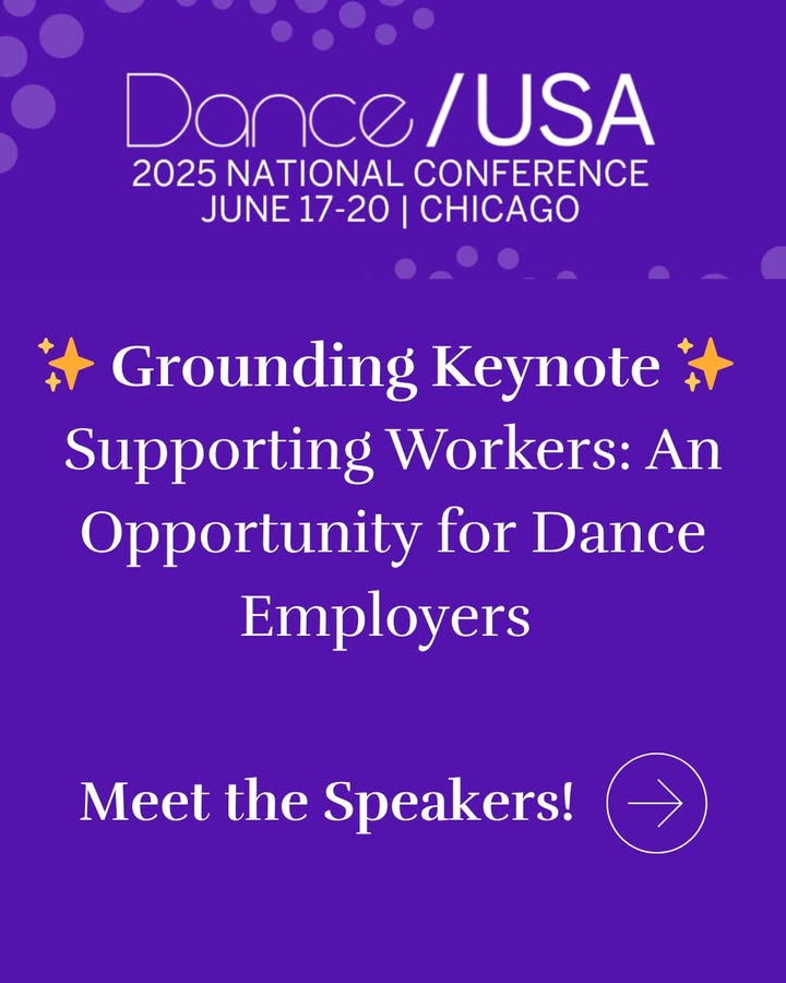 We’re honored to announce our third Grounding Keynote for #DanceUSA2025, entitled "Supporting Workers: An Opportunity for Dance Employers" presented by Thomas S. Kenan Institute for the Arts. 🎤 This keynote highlights dance workforce practices for thriving, not just surviving. The session will dive into: → How the labor movement is gaining momentum in the arts → How dance employers can proactively advance protections, improve conditions, and support sustainability → Actionable strategies to help employers align their practices with a more equitable, justice-centered future Hear from a panel of industry leaders: 💥 Candace Thompson-Zachery 💥 Marissa Jones ...with additional speakers at this Grounding Keynote to be announced! 👀 🚨 Final Registration for the Dance/USA 2025 National Conference closes this Monday, June 2 at 11:59pm. Make your plans and register this weekend! 🚨 Save your spot → https://www.danceusa.org/conference #DanceUSA2025 #DanceConference #DanceWorkforce #ArtsEquity #SupportDanceWorkers #JusticeInDance [Media Description: A carousel of 5 graphics with purple backgrounds and white text. Some of the graphics contain photos of Candace Thompson-Zachery and Marissa Jones.] (fb)
