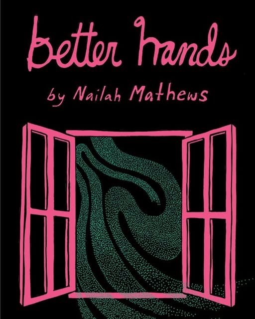 ✨PREORDER ✨ Who breaks the cycle, and what does breaking it cost? Winner of the 2023 Anzaldúa Poetry Prize, better hands eulogizes legacies of violence, underscored by a fervent desire of becoming. Mathews guides readers across and through “the infinity pink” in poems that drip a reverence tinged with resentment. Their debut chapbook engages myth, nature, and the body to honor the past and summon uncertain, ecstatic futures beyond. PRAISE “The eye—the I—is rigorously generous across these poems. They don’t attempt to rebuild a world or define a world, rather they do something more powerful and difficult: they dare an intimate lexicon and imagery wild and energetic enough to bare the overwhelm of the unknown world and our relationship to and relationships within it. The lines flicker, from light to dark, a wet shine, an earthen darkness, a scar, a seed, the body and body of language, bordering the ecstatic. Images tremble and transform, become both familiar and surprising, under the pressure of the speakers’ unrelenting desires and I was lucky to find myself wandering the blur between memory, moment, and the impossibility of what might happen next. Within these poems is a bold embrace of sensuality and how language can be our portal to collapse the temporal and spatial hierarchies of ancestor and descendant—the poems seem to say: we are who we are from and we become what becomes us next.” —Natalie Diaz (@ndinn), author of Postcolonial Love Poem (fb)