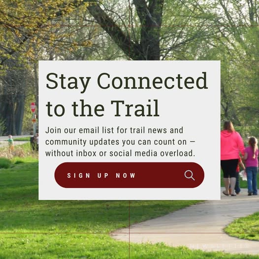 𝗬𝗼𝘂𝗿 𝘁𝗿𝗮𝗶𝗹. 𝗬𝗼𝘂𝗿 𝗰𝗼𝗺𝗺𝘂𝗻𝗶𝘁𝘆. 𝗬𝗼𝘂𝗿 𝘂𝗽𝗱𝗮𝘁𝗲𝘀. Stay connected — without relying on the algorithm. Our newsletter makes sure you never miss trail news, events, or opportunities to get involved. (fb)