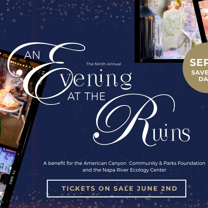 Tickets for the 9th annual Evening at the Ruins benefiting the American Canyon Community & Parks Foundation and the Napa River Ecology Center are on sale now! Visit our new event website for all the ticket purchase details. Don't delay...tickets sell out fast! https://auctria.events/eveningattheruins (fb)