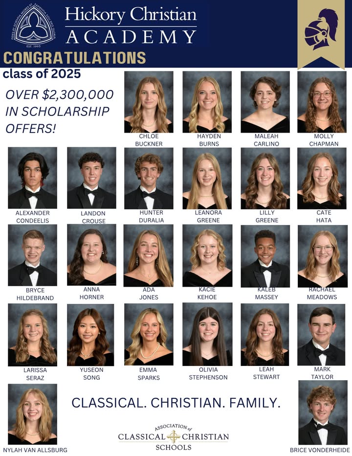 **Over $2,300,000 in Scholarships Offered to our 2025 Graduating Class!** Congratulations to this exceptional group of recent graduates! HCA Classical. Christian. Family......and ACADEMIC EXCELLENCE. (fb)