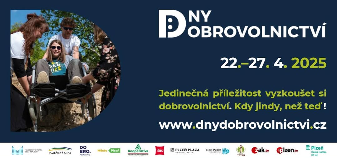 🙋♀️🙋 Dny dobrovolnictví 2025 se blíží! Ve dnech 22. – 27. 4. 2025 se opět setkáme a společně budeme šířit dobro! Připojte se k nám a staňte se součástí akcí, které spojují lidi s dobrým srdcem. ❤️ Více informací o nabídce DobroAkcí a možnostech zapojení v našem regionu najdete ZDE: dobrovolnictvi-plzenskykraj.cz/dny-dobrovolnictvi-2025/ Nezapomeňte také sledovat naši FB událost, ať vám neunikne žádná novinka 👉 DNY DOBROVOLNICTVÍ Plzeňského kraje 2025 A hlavně DĚKUJEME všem našim skvělým partnerům, kteří nám pomáhají šířit dobro Plzeňským krajem: 🤝 Generální partner: Kooperativa - Čechy Západ 🤝 Hlavní partneři: ibis Plzen, Obchodní centrum Plzeň Plaza, EURONOVA GROUP Záštitu nad kampaní převzali: 🔹 hejtman Plzeňského kraje Kamal Farhan / Plzeňský kraj 🔹 primátor města Plzně Roman Zarzycký má rád Plzeň / Plzen.eu Mediální partneři: 👉 Český rozhlas Plzeň 👉 ZAK TV 👉 www.plzen.cz Regionální dobrovolnické centrum Plzeňského kraje Národní asociace dobrovolnictví, z.s. Dny dobrovolnictví #DnyDobrovolnictví2025 #PlzeňskýKraj #Dobrovolnictví #Kooperativa #ibisPlzen #PlzeňPlaza #EURONOVAGROUP #ČeskýRozhlasPlzeň #ZAKTV #Plzen (fb)