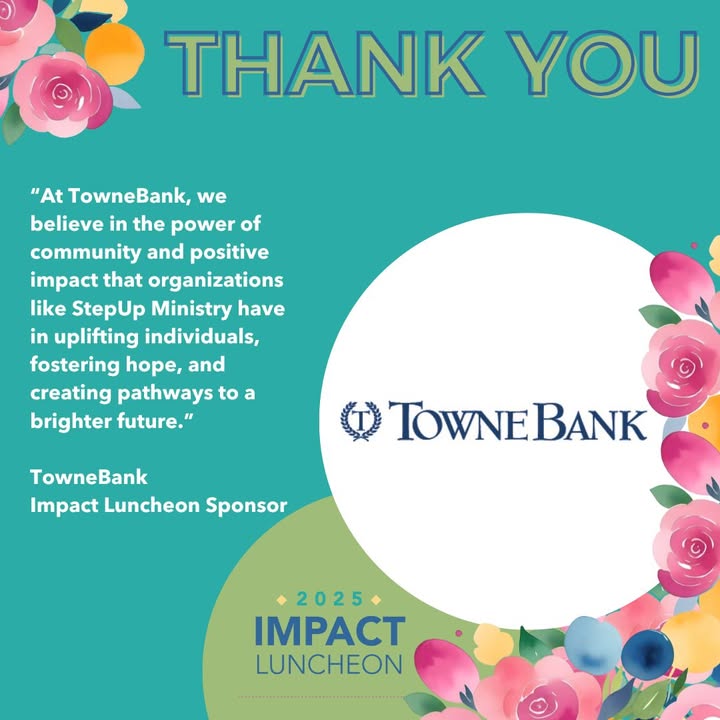 This is TowneBank's FIFTH year sponsoring StepUp's Impact Luncheon which will take place on June 2nd. This level of sustained support is so impactful to our programs and allows us to continue to create positive change in our community. Thank you, TowneBank! #support #sponsor #Impact2025 (fb)