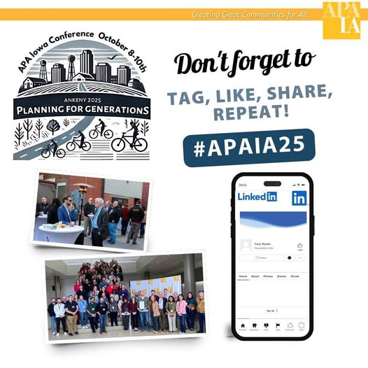 We’re looking forward to seeing you today for the final day of the APA Iowa Annual Conference! Breakfast starts at 7:30am and our final keynote, Libby Roberts, is on at 8:30am. See you there! #APAIA25 (fb)