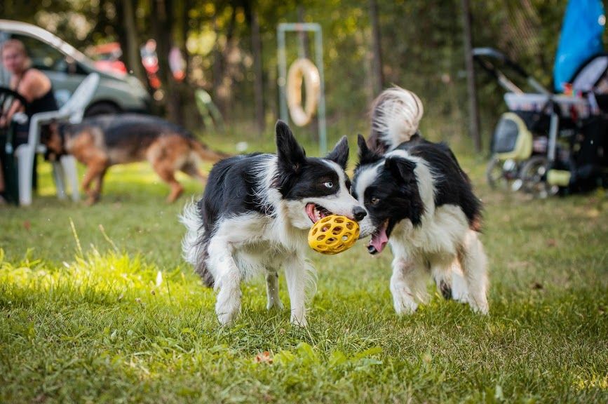- Treibball: Aktivita vhodná pro psy všech velikostí a věků, při které pes přemísťuje míče do brány.