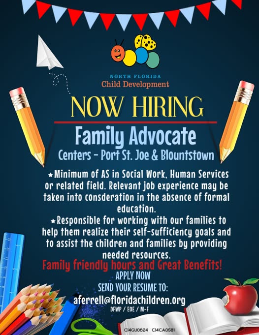 We are hiring Family Advocates for our Port St. Joe and Blountstown locations! (fb)