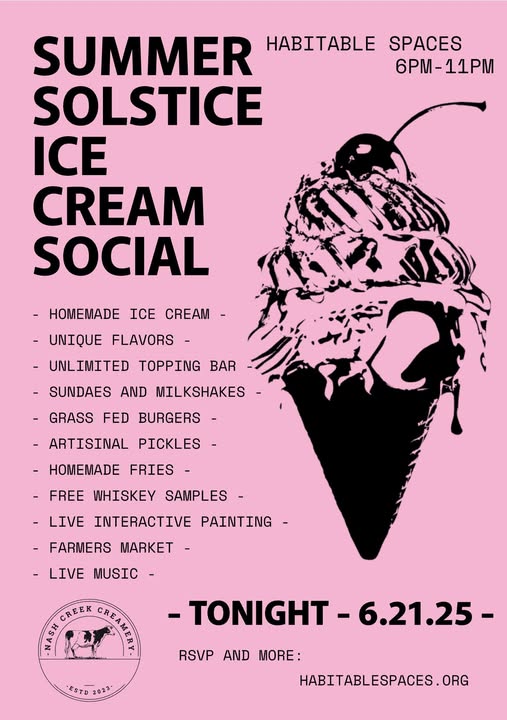 We are so excited to celebrate the summer solstice with y'all! Tons of fun in store for tonight: - Music featuring Ethan Ford - Whiskey courtesy of Johnny Pickles Distillery - Painting courtesy of Artable Curiosities - Burgers and frozen treats will be available to purchase Located at 3050 FM 1104, Kingsbury, TX 78638 or just search "Habitable Spaces" in your GPS (fb)
