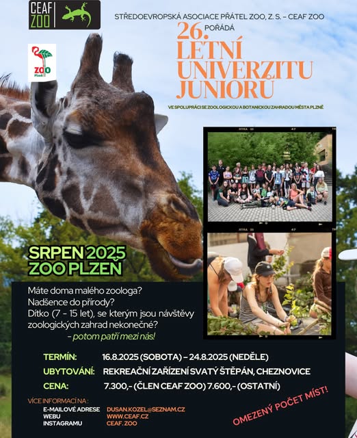 CEAF ZOO Středoevropská asociace přátel ZOO | Central European Assoiciation of ZOO Friends CEAF ZOO Středoevropská asociace přátel ZOO Central European Association of ZOO Friends Aktuality Adopce LUJ při ZOO a BZ města Plzeň | 16. – 24. 8. 2025 Novinky O nás Všude ve světě existují lidé milující přírodu, zvířata, rostliny a vůbec živý svět kolem sebe.