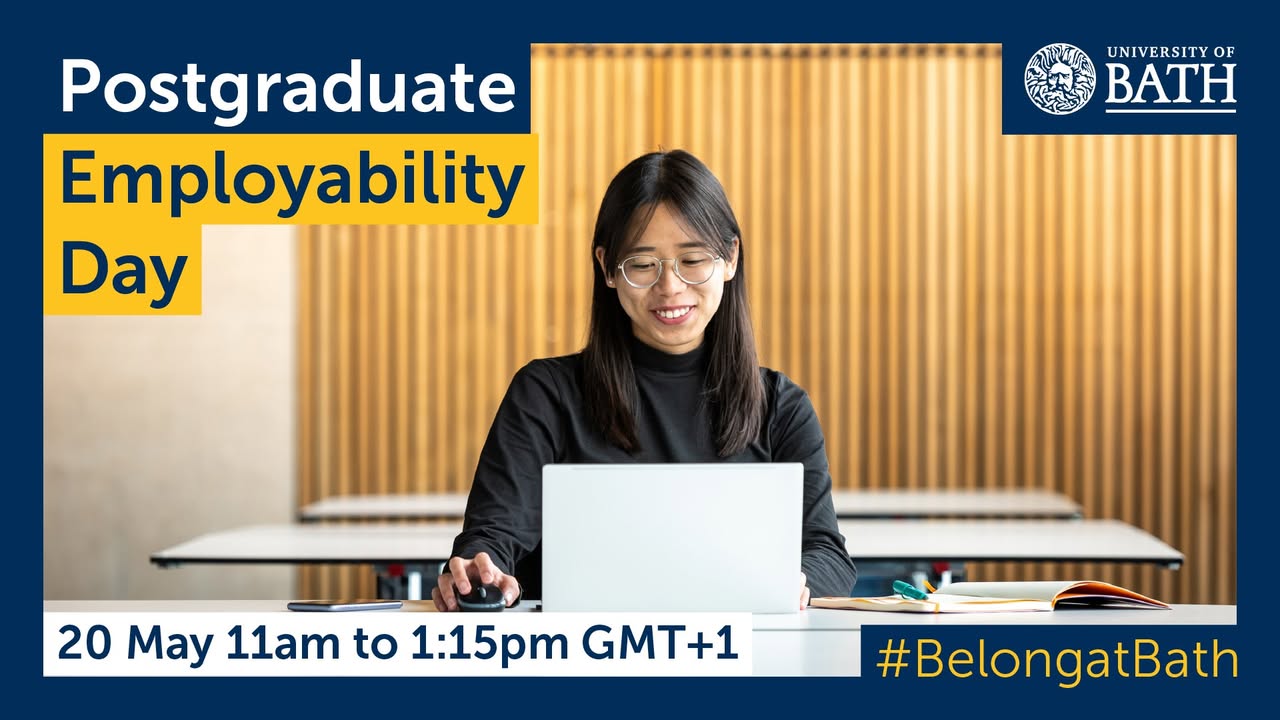 Join us for our online Postgraduate Employability Day on May 20 to learn about the dedicated career support available for Master's students and how it can help you reach your goals. Whether or not you have already applied for a postgraduate course at Bath, you will have the opportunity to hear from our expert careers team, current postgraduate students, and alumni. Book your place today! 👇 https://www.bath.ac.uk/events/postgraduate-employability-day/ #BelongAtBath #UniversityOfBath #Postgraduate #Masters (fb)