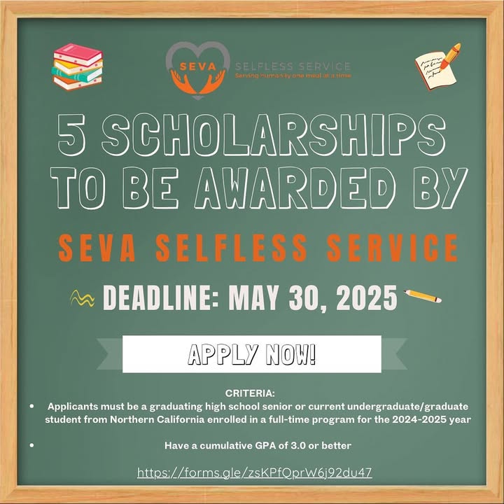 ⭐️ Scholarship alert🌟 If you’re a high school senior, undergraduate or graduate student from Northern California with a passion for making a difference, this scholarship is for you! We will be awarding 6 scholarships to highly motivated applicants who have a desire to make their community a better place! Application deadline is May 30th, visit the link in our ig bio to apply. Share this post with students who might be interested! ❤️ #sevaselflessservice #seva #community #scholarship #northerncalifornia #graduate #undergraduate #highschoolsenior (fb)