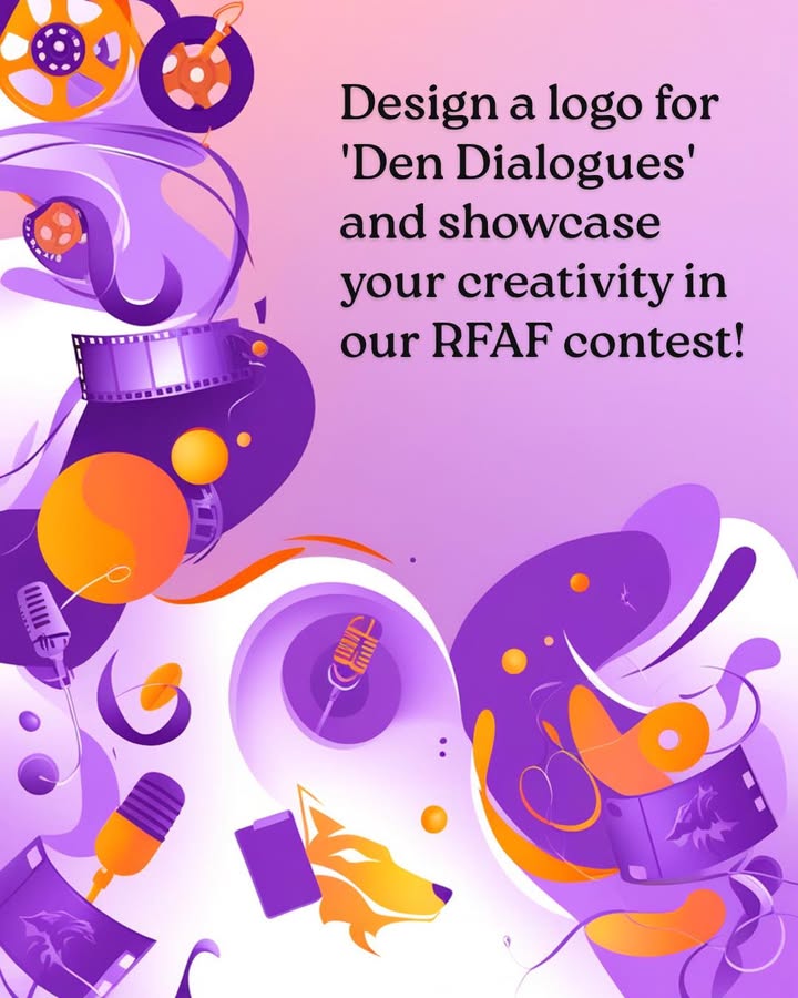 🎙️ Logo Contest Alert! 🎨 The Raleigh Film and Art Festival is launching a logo contest for our student run podcast, Den Dialogues a show that amplifies the creative voices of local filmmakers and visual artists, and shares stories of inspiration with the world. 📌 Logo Requirements: • Must include RFAF’s purple & orange color scheme • Must feature the title Den Dialogues in the design • Include imagery related to filmmaking, creativity, podcasting, or a wolf 🖌️ Use your imagination and show us what Den Dialogues means to you! 💡 Submit your logo design through our official entry form: 👉 https://docs.google.com/forms/d/e/1FAIpQLSfo8plOIU3kxffO1nD8SefH-eBAh94E-VJg5CcUPGv04ni-RQ/viewform?usp=header The winning design will be featured as our official logo and announced on Instagram @raleighfilmandartfestival good luck! #DenDialogues #LogoContest #RFAF #StudentVoices #CreativeCall #PodcastArt #FilmmakersOfTomorrow #RaleighArtists (fb)