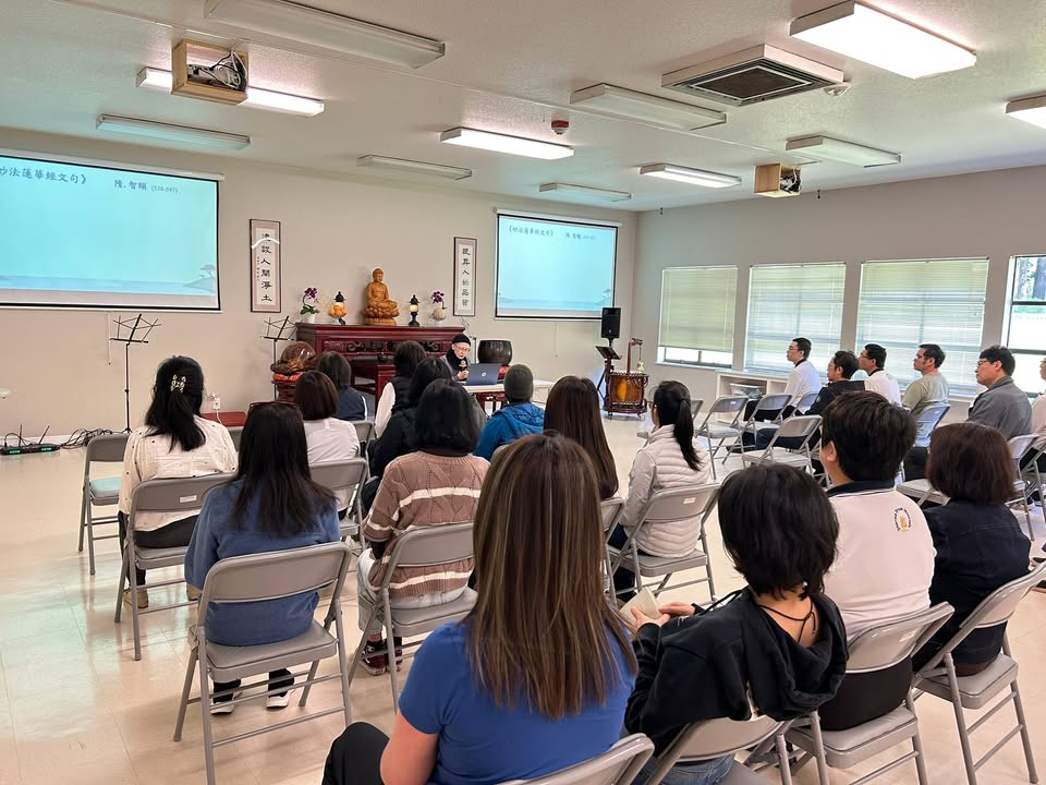 普門救濟 願行無礙 慈悲自在 -- 觀音法門講座與法會 活動報導 在春末陽光溫潤、萬物欣欣向榮的時節,法鼓山西雅圖分會舉辦了《法華經.普門品》講座與觀音法會,吸引近30位信眾前來共修。透過聽經、誦經與禮拜,讓大家可以深入法義,進一步體會觀世音菩薩聞聲救苦的廣大平等心,普門示現救度眾生。 上午的講座由常悟法師主講,法師引用隋朝智頤大師《妙法蓮華經文句》中〈釋觀世音菩薩普門品〉,深入解說智者大師從「通說」與「別說」詮釋「觀世音」與「普門」的義理,帶領大眾從經題到經文架構,認識觀音菩薩圓滿的慈悲智慧如何普應一切眾生的苦難,並說明「普門」即是中道實相之門,非空非假,即空即假,圓融無礙。 法師進一步引導大眾體會經文中的修行脈絡,從觀音之名號,透過身口意三業修持,得到救拔脫離苦難,而產生了堅定的信仰,為第一部份。接著,以神通力顯現三十三應化身,並運用妙智說法度眾生。最後的偈頌,是總結此品,其中的「五觀」與「五音」顯露出自證與化他的功能,實證無智亦無為究竟。法師也提醒大家建立正知正見,唯有依行正法,才能真正契入經義、配合修行,才能有所提升,避免落入知識的窠臼而不自知。 午後的觀音法會在法師引導靜坐後展開,定心齊聲誦念《普門品》與觀音菩薩聖號,以拜願來洗滌染心,同時生起起歡喜心與願心。聲聲相續不斷,願將這份願心化作祝福,回向十方,祈願眾生安樂。 這次活動是在分會裝修工程前的最後一次法會共修,法會結束後,大家一起動手打包搬運物品。近日內將會布達在裝修期間,新的共修地點和未來活動。歡迎舊雨新知、親朋好友,一起來學佛修行,走上解脫自在的光明大道! 文/圖: 法鼓山西雅圖分會 (fb)