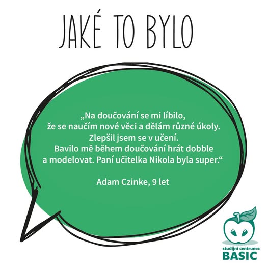 🍏 Děkujeme za krásnou referenci 🍏 Pomůžeme vám také 👇 https://www.basic.cz/konzultace-zdarma/ #reference #référence #doučování #doucovani #doučovani (fb)