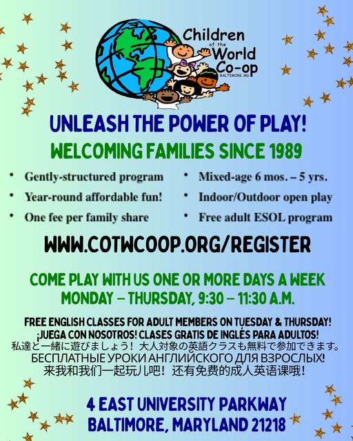 Come play with us this Fall! We have added Mondays to our schedule! https://cotwcoop.org/register/ (fb)