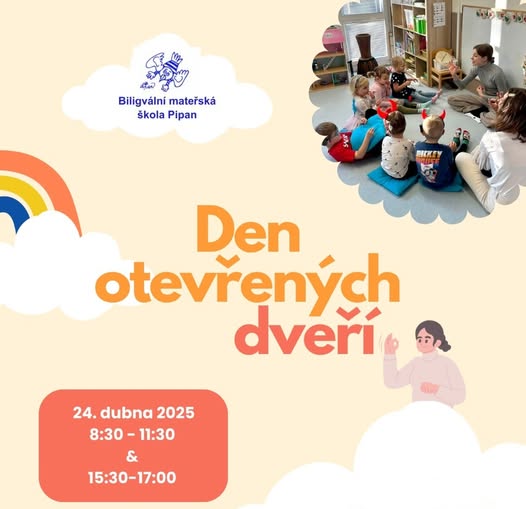 Hledáte mateřskou školku pro své dítě? Přemýšlíte, jaká by byla nejlepší? 👨👩👧👦 Ta naše! Zveme vás na Den otevřených dveří do naší Bilingvální mateřské školy Pipan. Ve čtvrtek 24. dubna si můžete prohlédnout prostory a naše paní učitelky zodpoví všechny vaše dotazy. 😀 Bilingvální školka Pipan přijímá děti: 📍 se sluchovým postižením, 📍 s narušenou komunikační schopností, 📍 s kombinovaným postižením, 📍 děti neslyšících rodičů, 📍 ale i děti bez zdravotního znevýhodnění, které z nejrůznějších důvodů potřebují menší kolektiv a individuální přístup. Máme dobře vybavené třídy, odborně vzdělané pedagogy, velkou zahradu a pořád dobrou náladu! 😊☀️ Těšíme se na vás! (fb)
