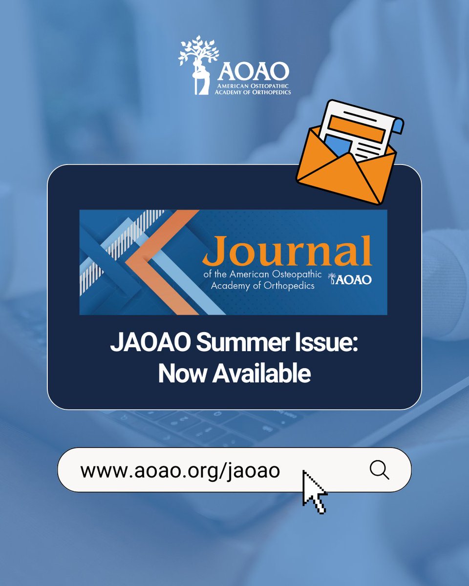 The Summer Issue of JAOAO is packed with TONS of updates from the osteopathic orthopedic community including the @upmc Orthopedic Residency Program! Read the latest isssue 👉 https://t.co/qMhG6sIJsI #Orthopedics #Osteopathic #AOAO #Orthopedicmedicine #AOAO2025 #JAOAOSummer https://t.co/HdK6RTIa6N (tw)