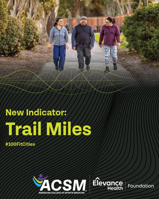 Trail miles per 100K residents is a new indicator added to the ACSM American Fitness Index for 2025. Trail miles represent not just recreational activity opportunities but also a community’s ability to engage in active transportation like walking or biking to work or school. The 100 city average is 27.8 miles. The US city with the most trail miles is Washington DC with a whopping 235.3! 👟🚴🏻 Learn more: https://brnw.ch/21wUN0o (fb)