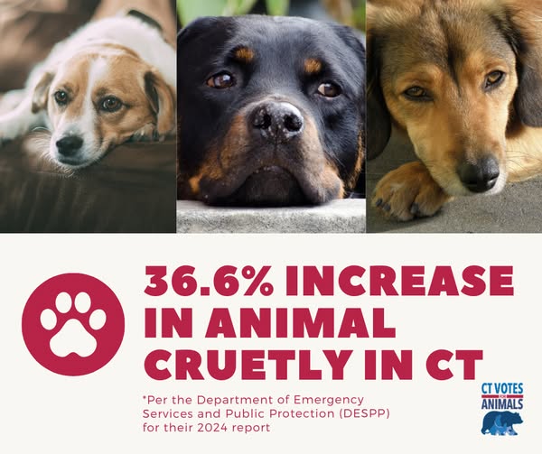 Animal cruelty cases are rising — up 36.6%* — yet punishments are getting lighter. Too many offenders walk away with accelerated rehabilitation (AR), even in horrific cases like fatal beatings. AR was meant for those unlikely to reoffend, not for abusers. Connecticut’s animals deserve real justice. 🐾 Discover ways to make a difference and explore valuable resources at the upcoming CFA event. 🔗 Link to register in comment section. *Per the Department of Emergency Services and Public Protection report (fb)
