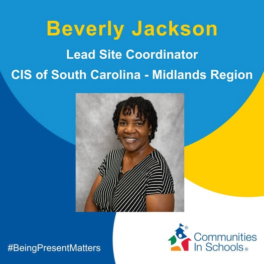 Today’s Site Coordinator Spotlight is on Beverly Jackson from Communities In Schools of South Carolina Midlands Region! 🎉 She was nominated by her colleague, Kizzie, who shared: “Beverly goes 'all in for students' by providing them with hope. Due to her unique situation, her site serves the South Carolina Department of Juvenile Justice's student population, Beverly faces everyday challenges and still shows up to work every day with an unwavering passion for student success. Beverly is truly the epitome of what it means to be all in for kids. She deserves to be spotlighted and so much more.” Thank you, Kizzie, for lifting up Beverly’s incredible work. And thank you, Beverly, for your more than 20 years of dedication to CIS and the students you serve. 💙 #BeingPresentMatters (fb)