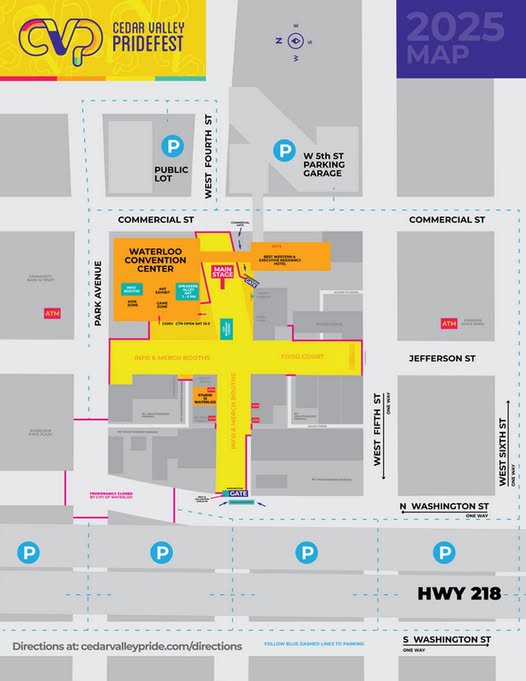🌈 Cedar Valley Pridefest is this weekend! 🎉 While there will be some street closures for the celebration, you can still get to all your favorite spots on W 4th, Jefferson, and Commercial. 🚗 Parking options: • Under the 218 overpass (access from Park Ave, 5th, or 6th St) • Commercial St. parking ramp • Street parking and other public lots You may have to walk a little farther, but downtown businesses are OPEN and ready to welcome you. Come shop, dine, and celebrate with us! 💛 (fb)
