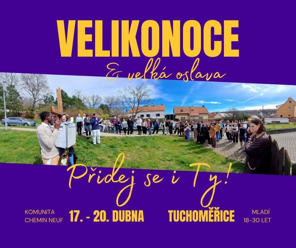 🕊️ Velikonoce, které prožiješ naplno! ✨ Přemýšlíš, co podniknout o Velikonocích? Chceš je letos prožít jinak— možná hlouběji, opravdověji? Přijeď do Tuchoměřic a objev radost, naději a společenství! Společně s dalšími mladými se ponoříme do hloubky a tajemství Velikonoc tak, jak jsi je možná ještě nezažil*a. 📍 Pro koho? 🔹 18–30 let 🔹 14–19 let (souběžný víkend) Více informací najdeš na stránkách komunity Chemin Neuf. Přidej se k nám! 💜 https://www.chemin-neuf.cz/navrh/velikonoce/ #VelikonoceJinak #Společenství #Radost #Naděje #CheminNeuf (fb)