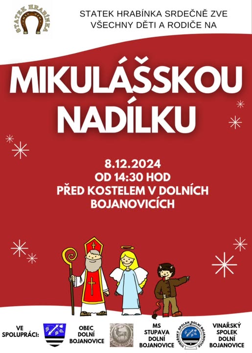 Dobrý den, Zveme všechny malé i velké na MIKULÁŠSKOU NADÍLKU! Děti mohou přijít pomoci se zdobením vánočního stromku. Můžete si přinést i vlastní ozdoby, nejlépe z přírodních materiálů. (fb)
