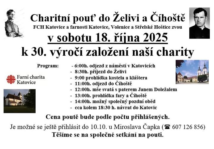 Farni charitaKatovice Aktualne Pomoc lidem v Izraeli a Palestine Kazdy clovek je pro nas dulezity Seniori Lide se zdravotnim postizenim Rodina deti mladez Lide bez domova Hospicova pece umirajici Jina pomoc Prispevky pro FCH Katovice Jak nas muzete podporit Neco o Charite Farni Charita Katovice pracuje v obcich Katovice Kraselov Strelske Hostice Volenice a okoli. Snazime se pomahat lidem v nouzi. Jsme otevreni vsem kteri maji ochotne a obetave srdce a ruce. Deti a mladez Rodiny Seniori Aktuality V sobotu 1.