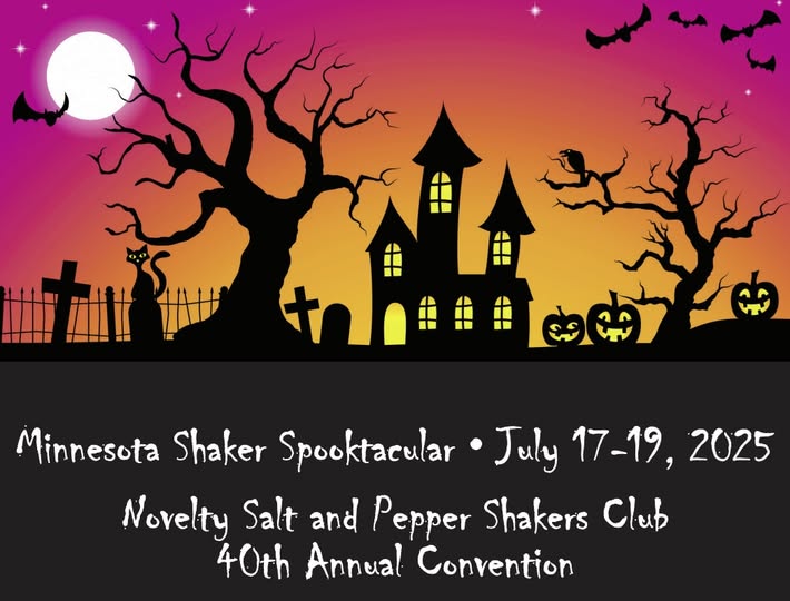 Make your plans now for the 40th annual convention! You have to be a member of the Novelty Salt & Pepper Shakers Club in order to attend the convention. The dues are only $20 a year, you can join here https://www.saltandpepperclub.com/ After you join the club, you will get newsletters 4 times a year and the March newsletter has all the convention registration material. If you have any questions about the convention, please contact James Oswald the convention chairperson (fb)