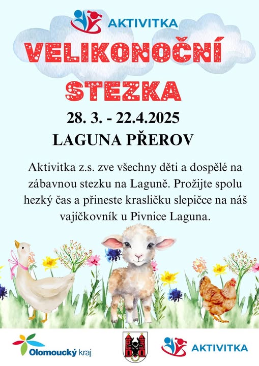 Velikonoce klepou na vrátka a my pro vás právě připravujeme stezku na Laguně v Přerově😍užijte si zábavné úkoly a přineste krasličku na vajíčkovník naší slepičce! Stezka bude k dispozici až do Velikonoc a můžou ji využít nejen rodiny,ale také mateřské či základní školy,kroužky a další🤩vyfoťtce se a nasdílejte nám jak se vám stezka líbila💕 Chcete zrealizovat stezku i ve vaší obci ? Napište nám! Zašleme vám ji zcela zdarma🐓🐣 Pivnice Laguna (fb)