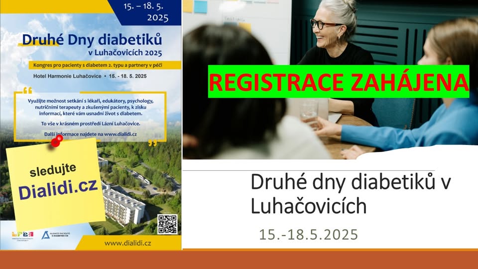 Rádi bychom vás pozvali na Druhé dny diabetiků, které se budou konat v malebných Luhačovicích od 15. do 18. května 2025. 🌿 Tato jedinečná událost je skvělou příležitostí pro všechny, kteří se zajímají o zdravý životní styl, prevenci a léčbu diabetu. Během těchto čtyř dnů se můžete těšit na: ✅ Odborné přednášky a workshopy ✅ Setkání s odborníky na diabetes ✅ Praktické rady pro každodenní život s diabetem ✅ Relaxační program a wellness aktivity v krásném prostředí Luhačovic Nezmeškejte tuto příležitost načerpat nové znalosti a inspiraci, jak žít plnohodnotný život s diabetem! 📅 Datum: 15.-18. 5. 2025 📍 Místo: Luhačovice Zajistěte si místo včas a připojte se k nám! Těšíme se na vaši účast. 📋 Přihlaste se zde: https://dialidi.cz/informace-ii-dny-diabetiku-v.../ #DnyDiabetiků #Luhačovice2025 #Zdraví #Diabetes #Prevence #ŽivotSDiabetem (fb)