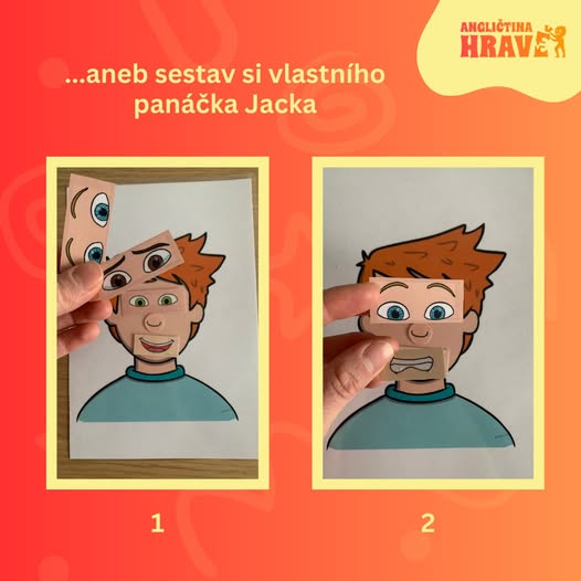 This is Jack. He has ginger hair, big blue eyes and small nose. He's (frightened / insecure / angry / ...). 🧑🦰 Které ze slov byste použili při pohledu na Jacka v obrázku číslo 2? Možná vás napadají jiná slovíčka... 🤔 Zde je další mini náhled do naší hodiny, kde s mladšími dětmi procvičujeme popis postav a jejich nálady. (fb)