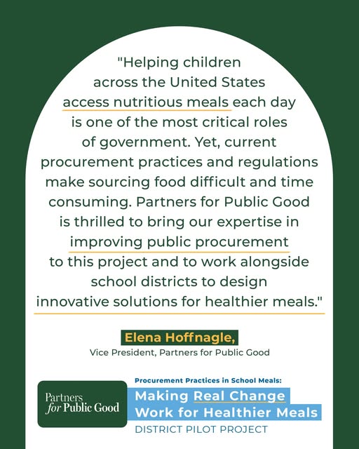 The Urban School Food Alliance has joined forces with Partners for Public Good to initiate phase 3 of the USDA cooperative agreement, focusing on enhancing procurement in school meal programs nationwide. Elena Hoffnagle, Vice President of Partners for Public Good, highlighted the project’s significance, stating, "Ensuring that children across the United States have access to nutritious meals daily is a fundamental responsibility of government. However, existing procurement practices and regulations often hinder effective food sourcing. We are excited to apply our expertise in public procurement to this initiative and collaborate with school districts to develop innovative solutions for healthier meal options." Together, we're paving the way for better nutrition in schools. #SchoolNutrition #HealthyMeals #PublicGood #USFA #Procurement #PilotProject (fb)