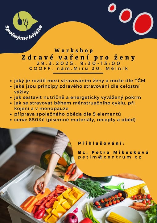 Za týden pro Vás Petra Mikesková připraví u nás v COOFFu opravdovou lahůdku - seminář o stravování pro ženy podle TČM. Bude se i vařit... :) Přihlášky posílejte přímo Petře - kontakt je v přiloženém letáčku. (fb)