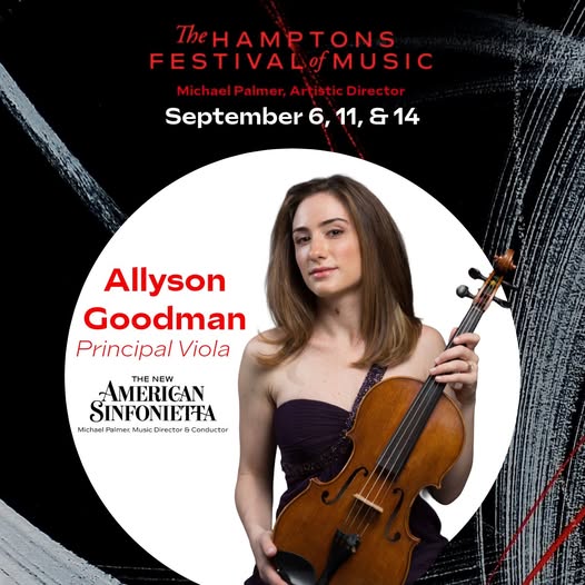 🎻 Meet the Musicians of The New Amerian Sinfonietta 🎻 🎶Hear the orchestra September 6, 11, and 14 in East Hampton Village Allyson Goodman was appointed principal viola of the Kennedy Center Opera House Orchestra 2014 and joined as the youngest member of the ensemble. She has been featured as a soloist and chamber musician with the orchestra and performs frequently with the National Chamber Players and the Post Classical Ensemble. As the recipient of top prizes in numerous competitions, Allyson has also appeared as a soloist, recitalist, and chamber musician across the country. Allyson spends her summers performing at the Grand Teton Music Festival and the Hamptons Festival of Music and has served on the faculty of the Aspen Music Festival and School and the Miami Summer Music Festival. When she isn’t performing or teaching, Allyson enjoys exploring D.C. on her bicycle. (fb)