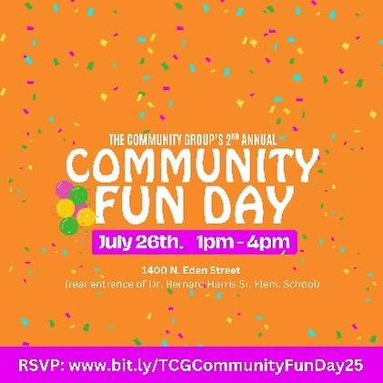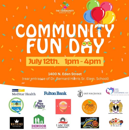 🎉 Join The Community Group for Community Fun Day! 🎉 Bring the whole family out for a day full of fun, food, games, and community vibes! 🧡 📅 Date: July 12th 🕐 Time: 1PM – 4PM 📍 Location: 1400 N. Eden Street (rear entrance of Dr. Bernard Harris Sr. Elementary School) Come out to see all the amazing community partners bringing you free resources, activities for all ages, giveaways, and so much more! 🎈🍧🏀📚 ✨ You don’t want to miss this! (fb)