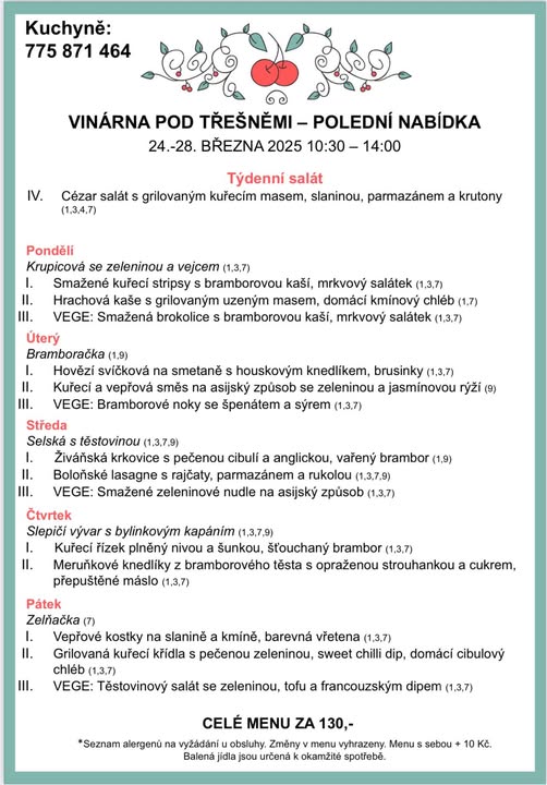🍒Naše polední menu na další týden Těšíme se na vás🥳 (fb)
